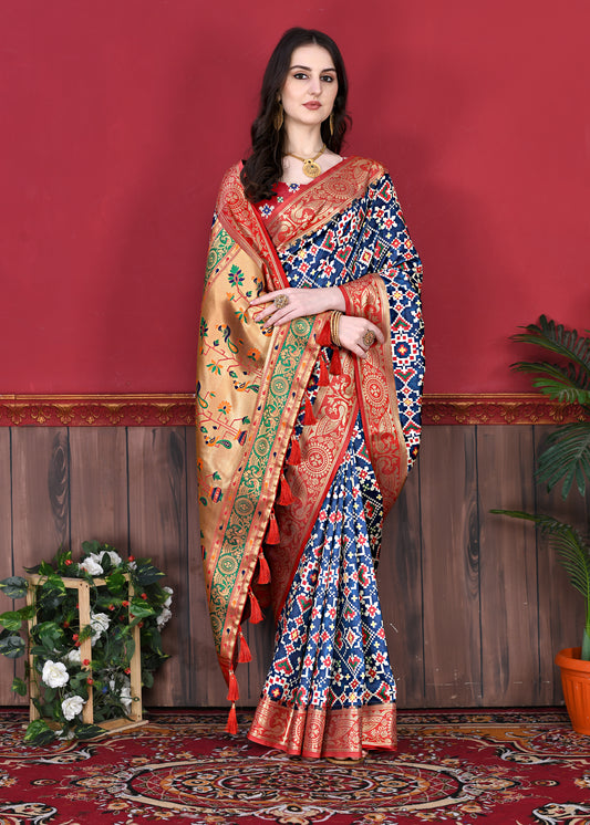 Soft Pethani silk saree with Patola Print all over the saree