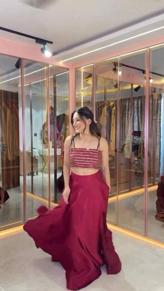 French Silk Mirror Embroidery Lehenga Choli Set