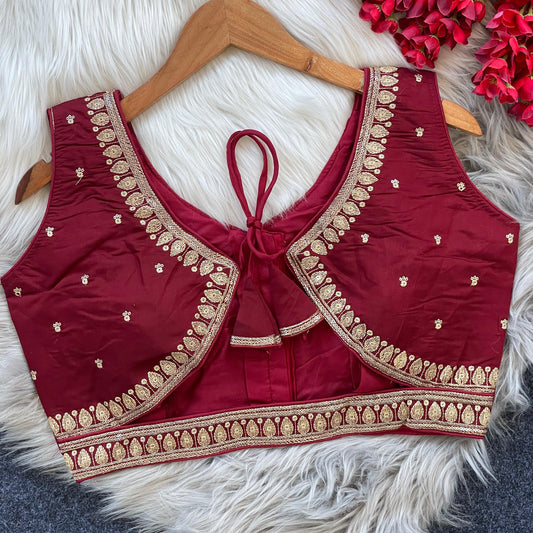 Heavy Embroidery and Sequence Work Dark Maroon Blouse