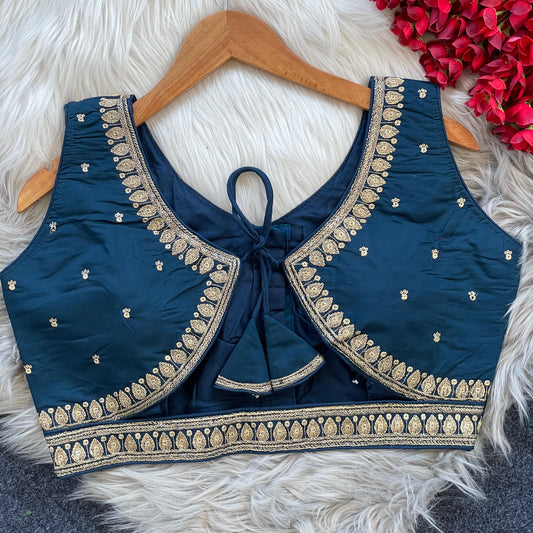 Heavy Embroidery and Sequence Work Dark Blue Blouse