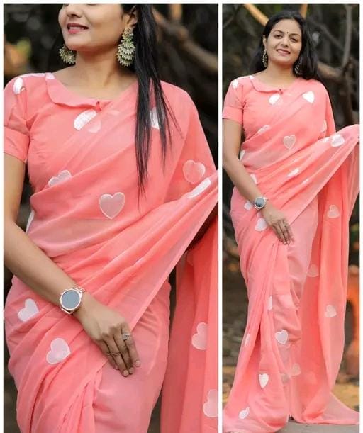 New Fancy Embroidery Work Georgette Tomato Saree With Blouse Piece