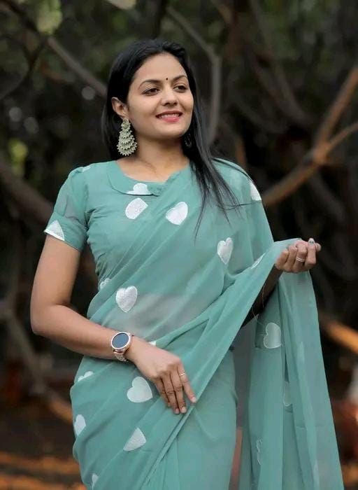 New Fancy Embroidery Work Georgette Rama Saree With Blouse Piece