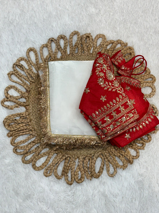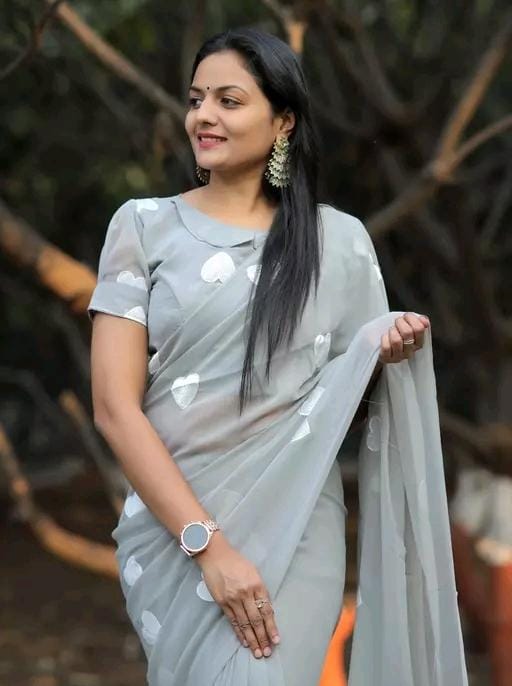 Dinner Saree With Fancy Rich Ready Made Blouse