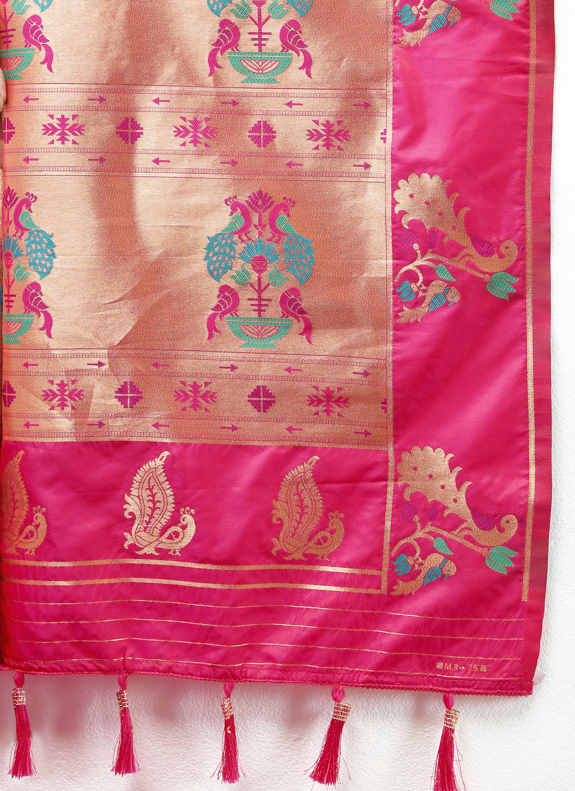 Soft Pethani silk Rani Saree with Copper Zari Weawing Motifs